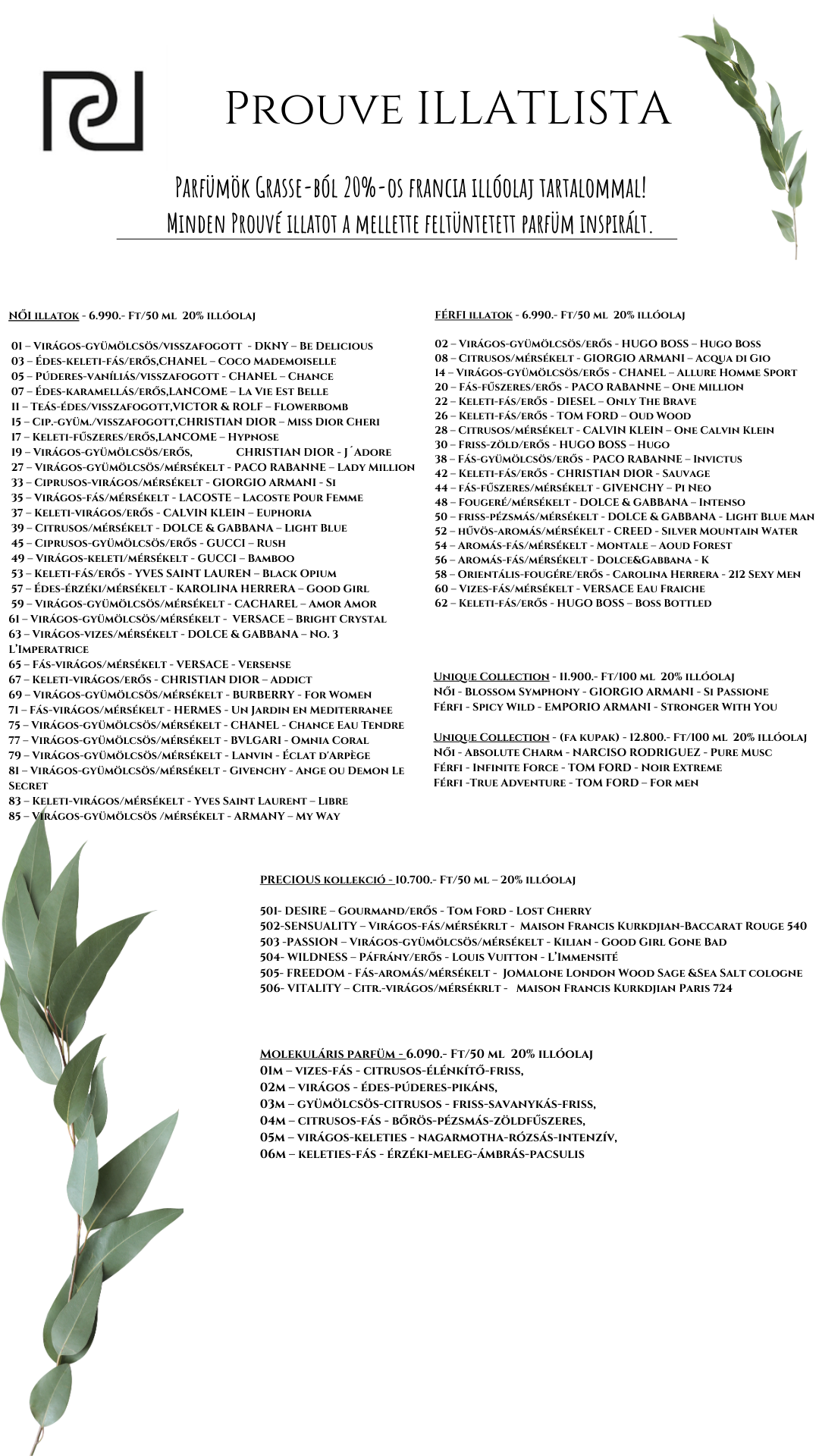 Mi minden parfümkoncentrátumát a Drom Fragrances International-től vásárolunk meg, kevesebb alkoholt és vizet használunk, így jobb minőségű terméket hozunk létre. Parfümjeink 20% eredeti parfümolajat tartalmaznak.
